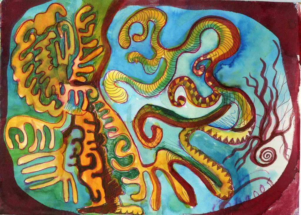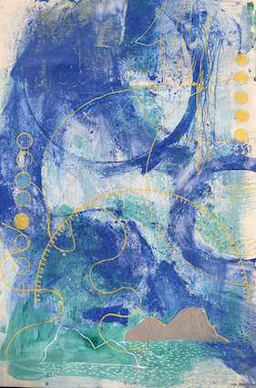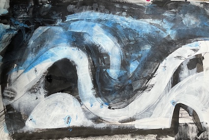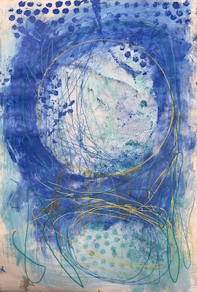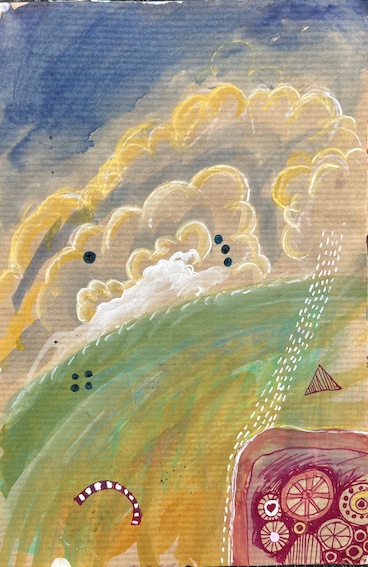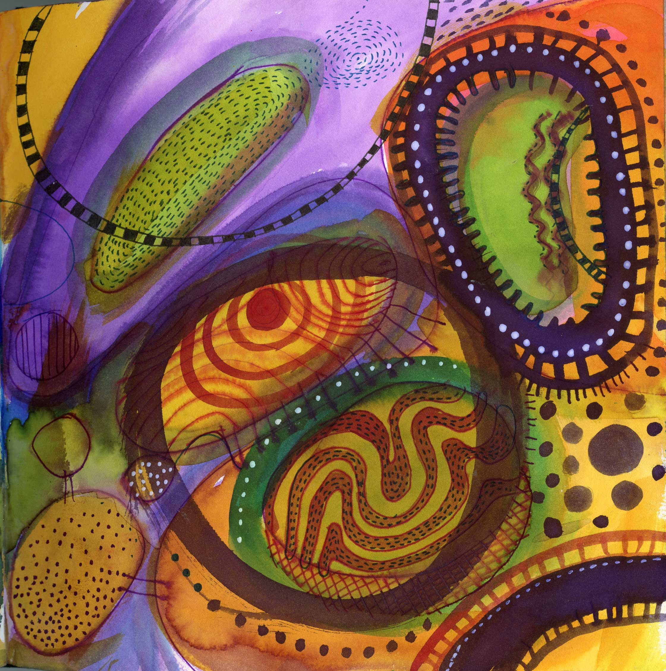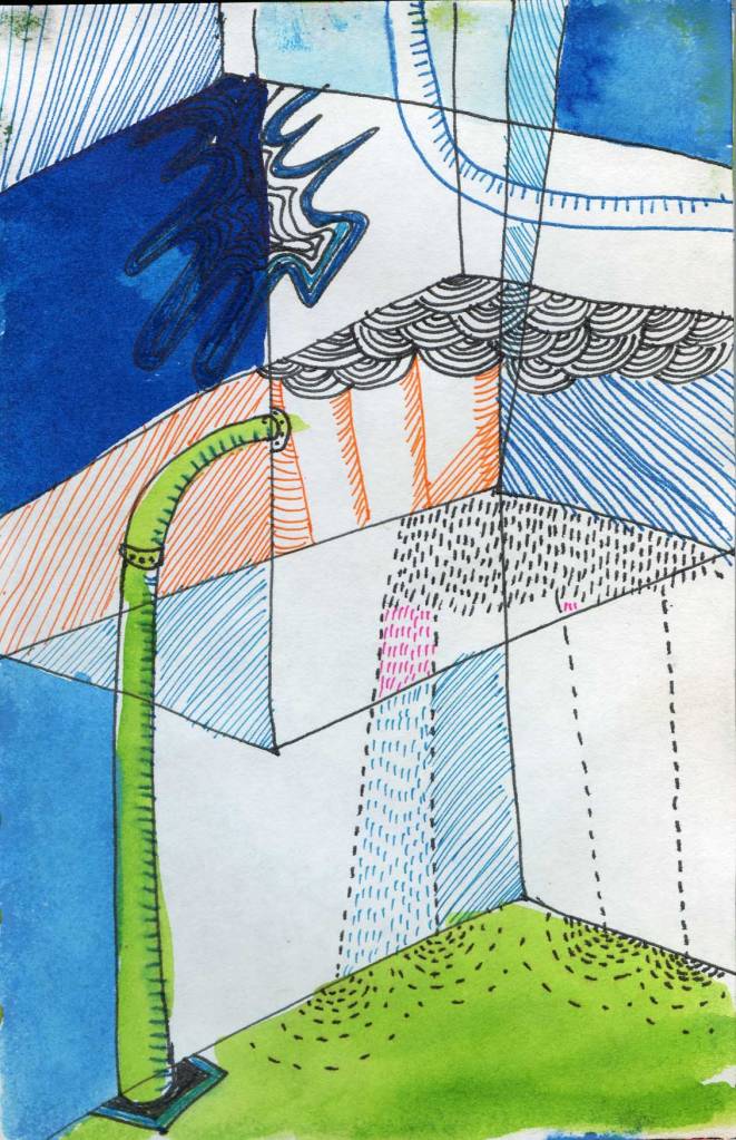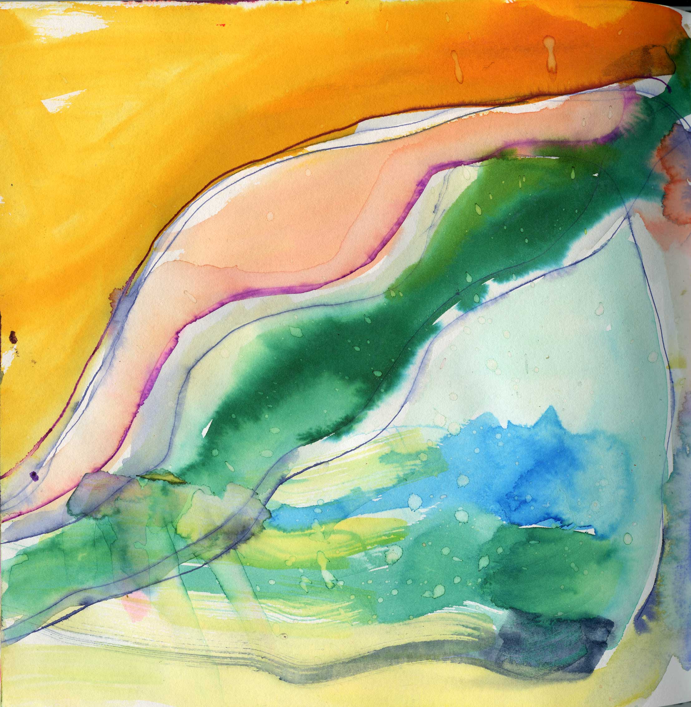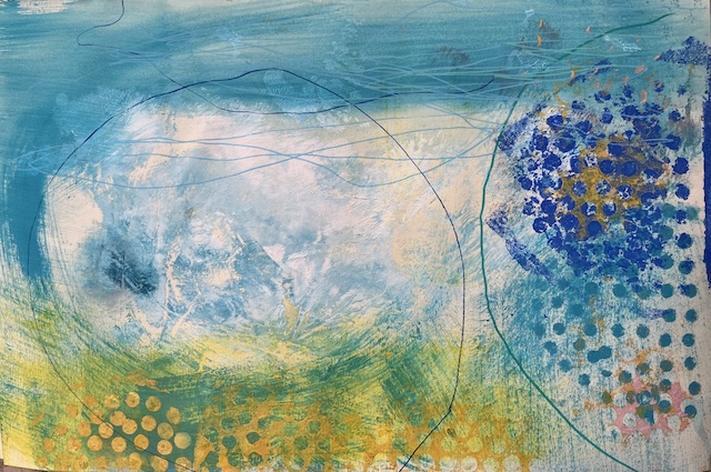 Sketchbook pages 1 Sep10 A4 size. Acrylic on paper. Taking stock of recent work. Blueish greenish ones.
