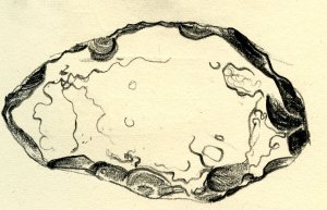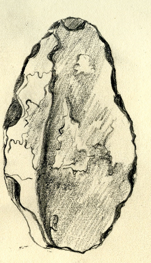 Hand tool picked up to draw in the clay ancient riverbed between East and West Runton, Norfolk.