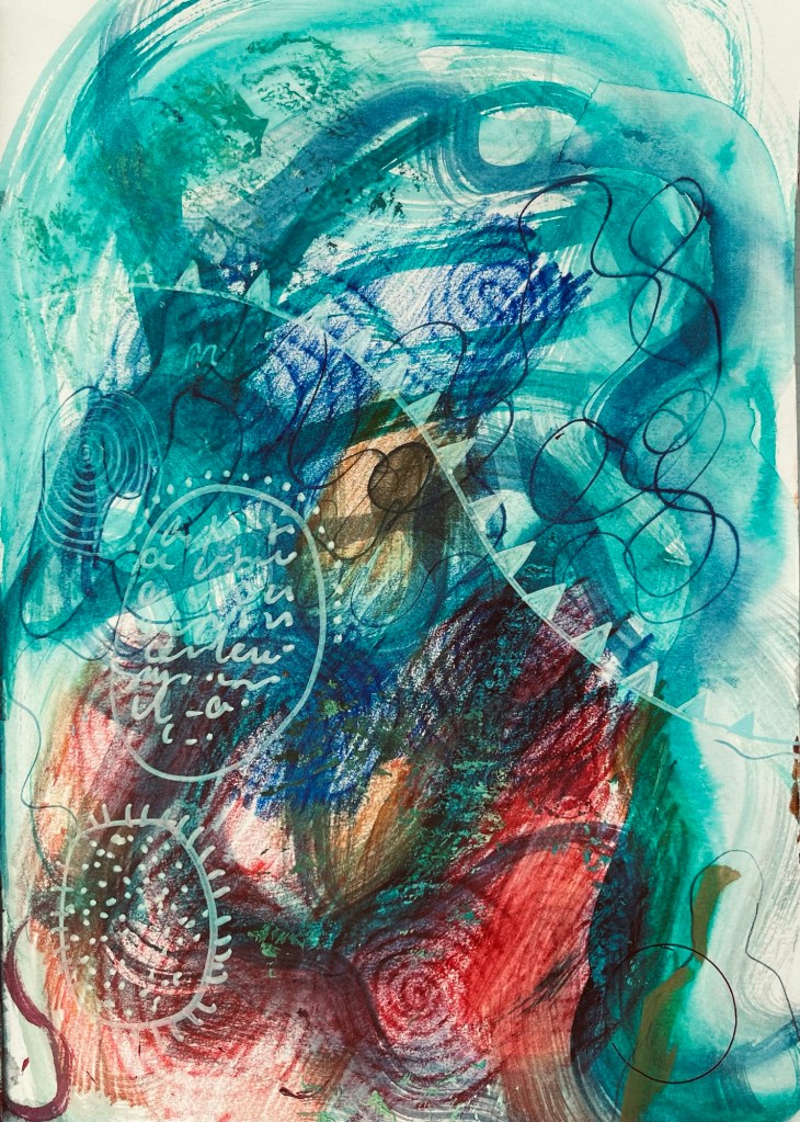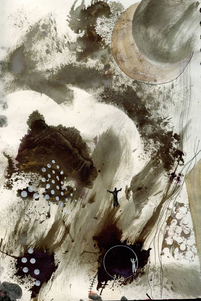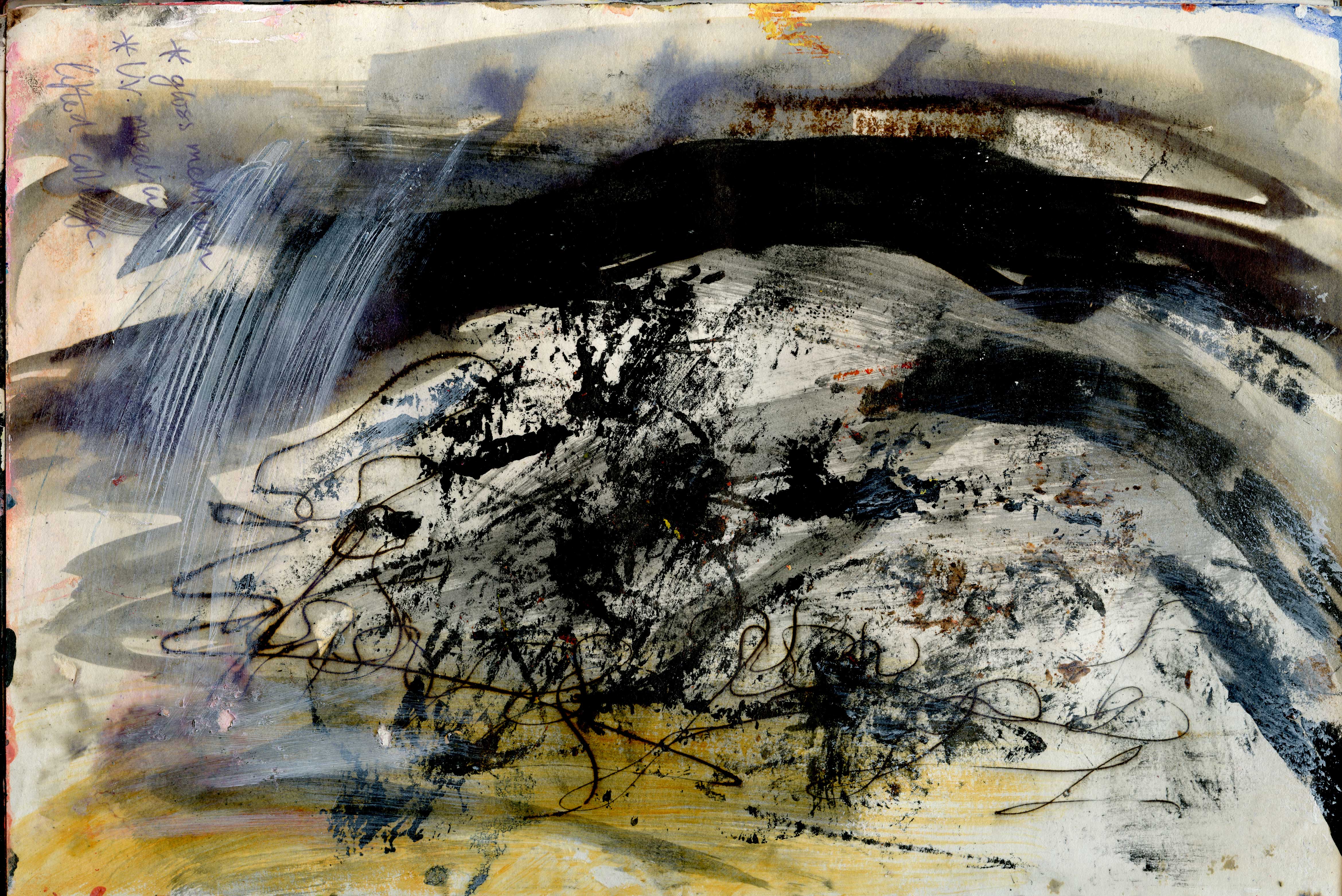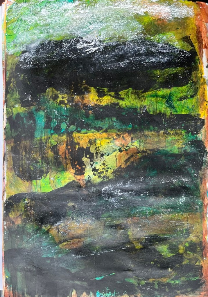 Big paintings have stalled, so experimenting in A4 sketchbook.