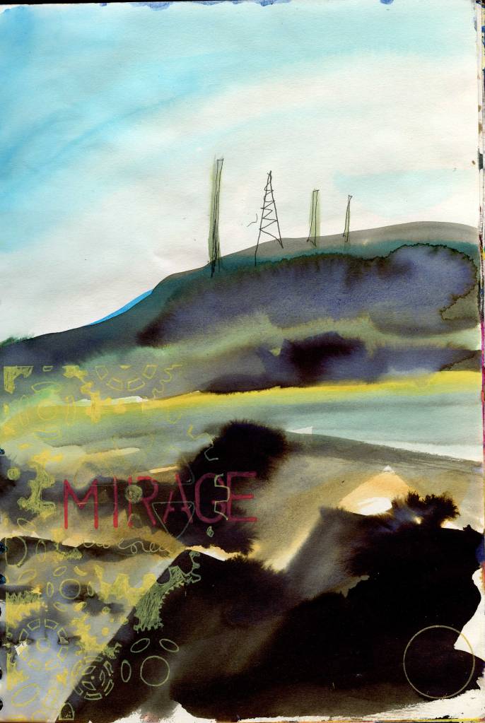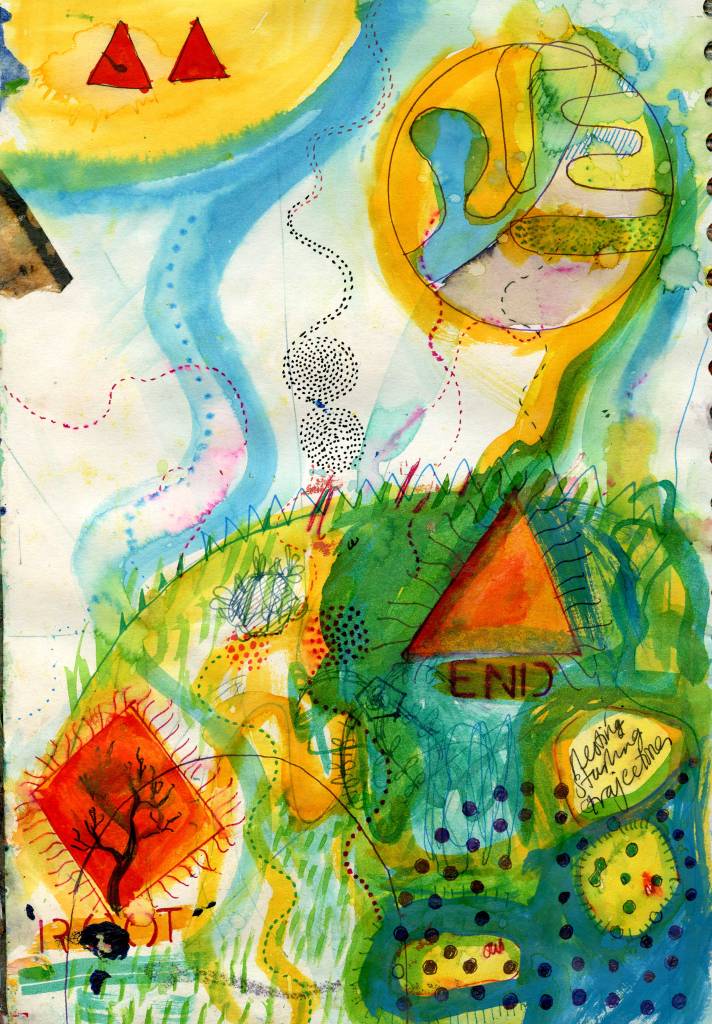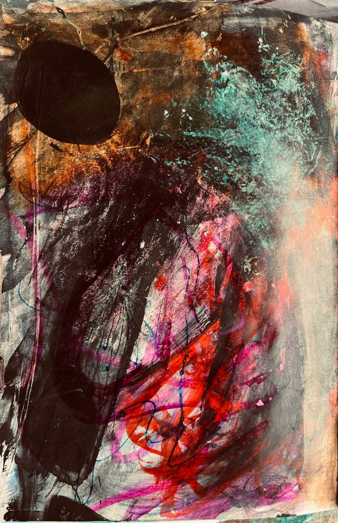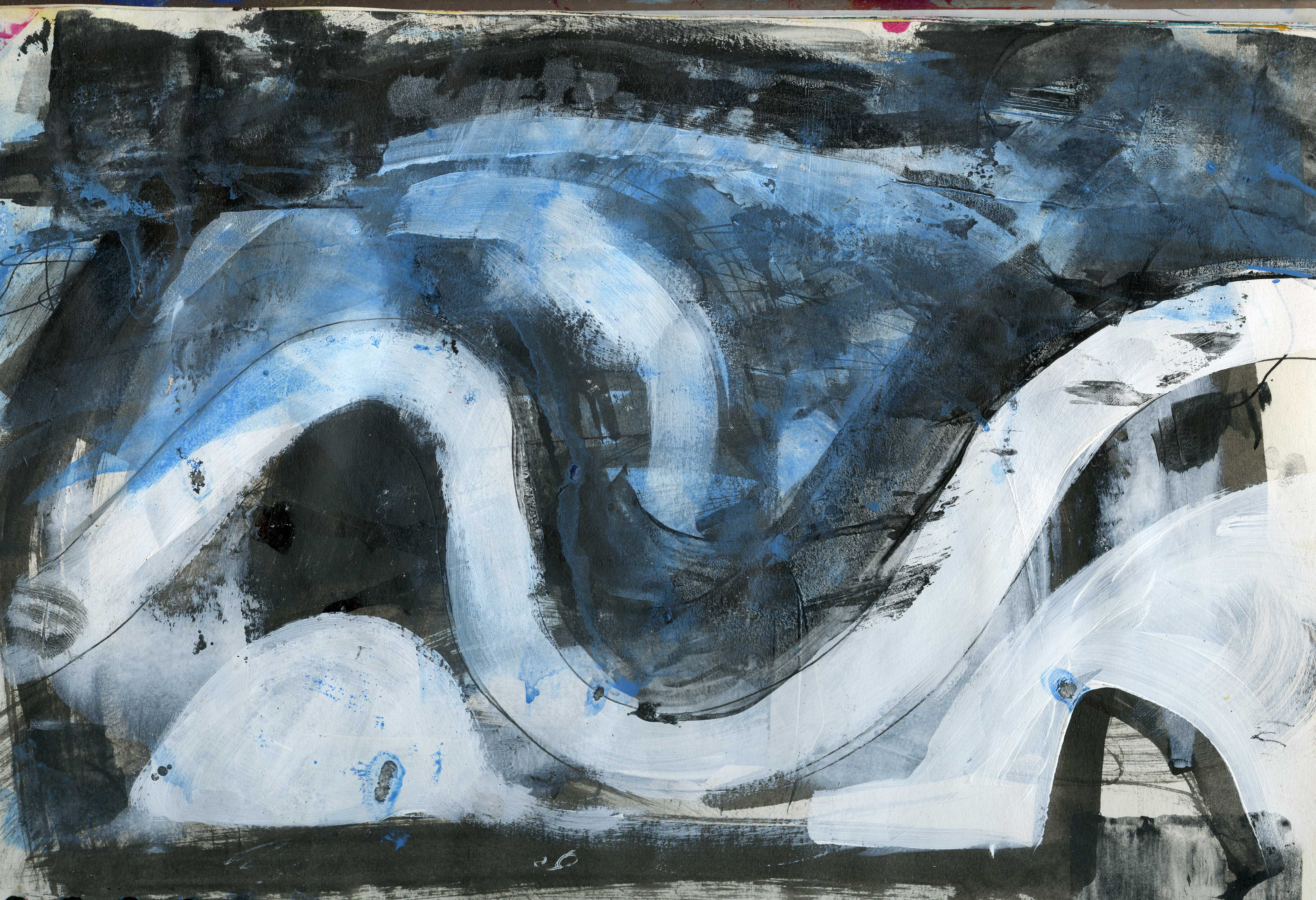 Big paintings have stalled, so experimenting in A4 sketchbook.
