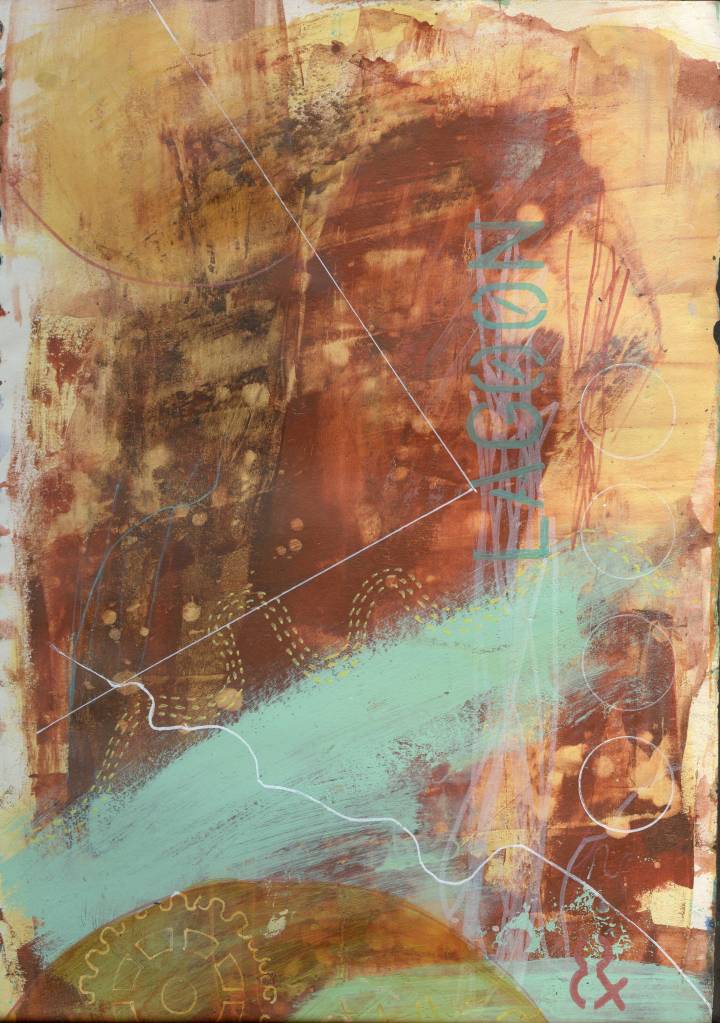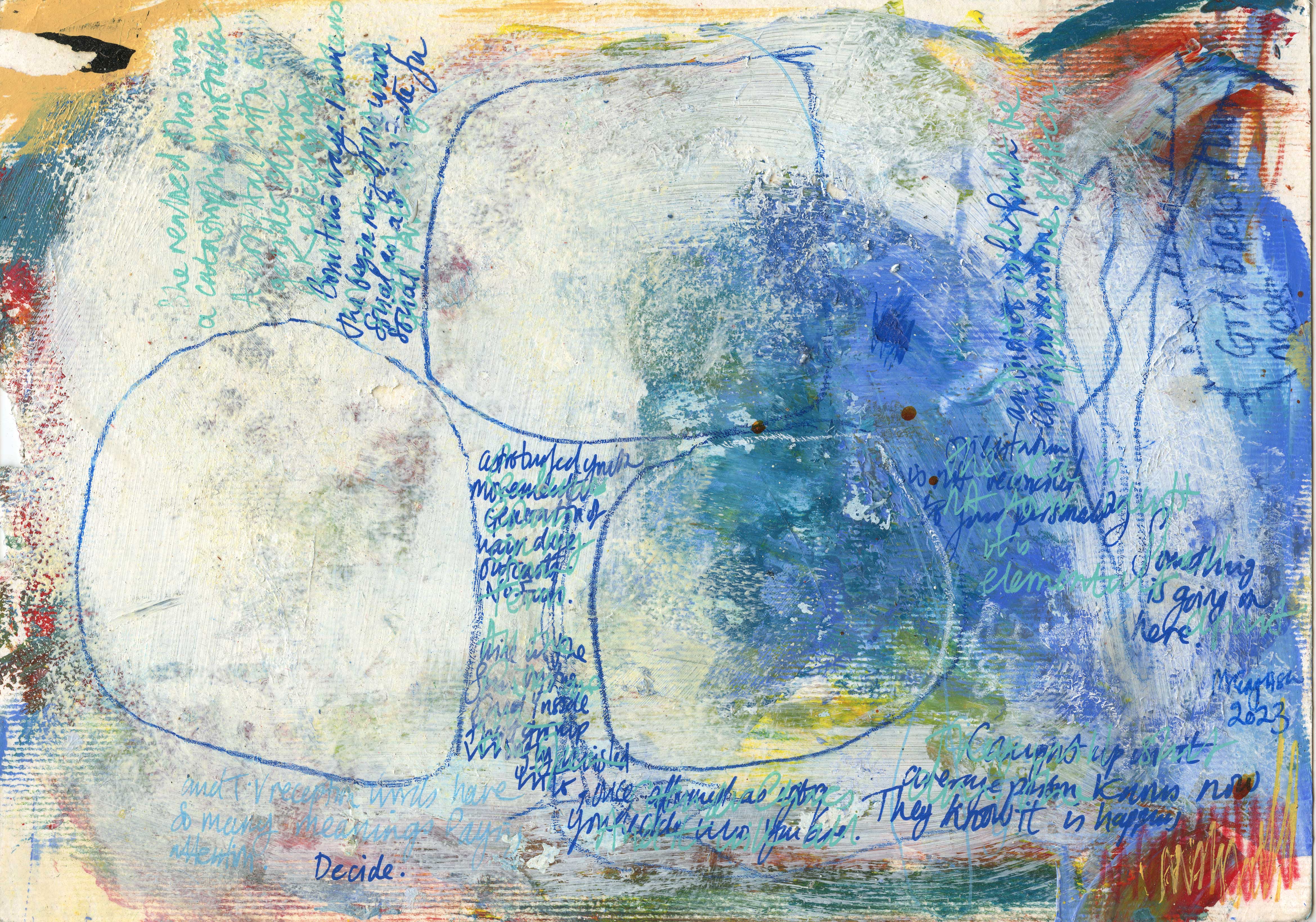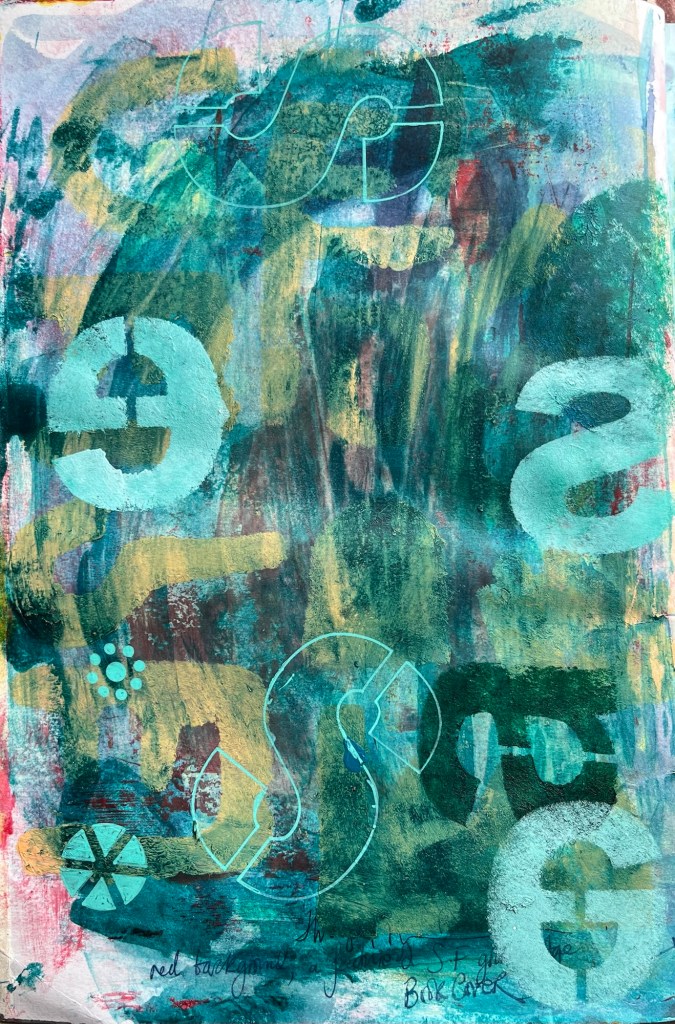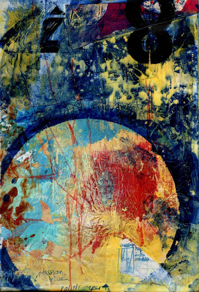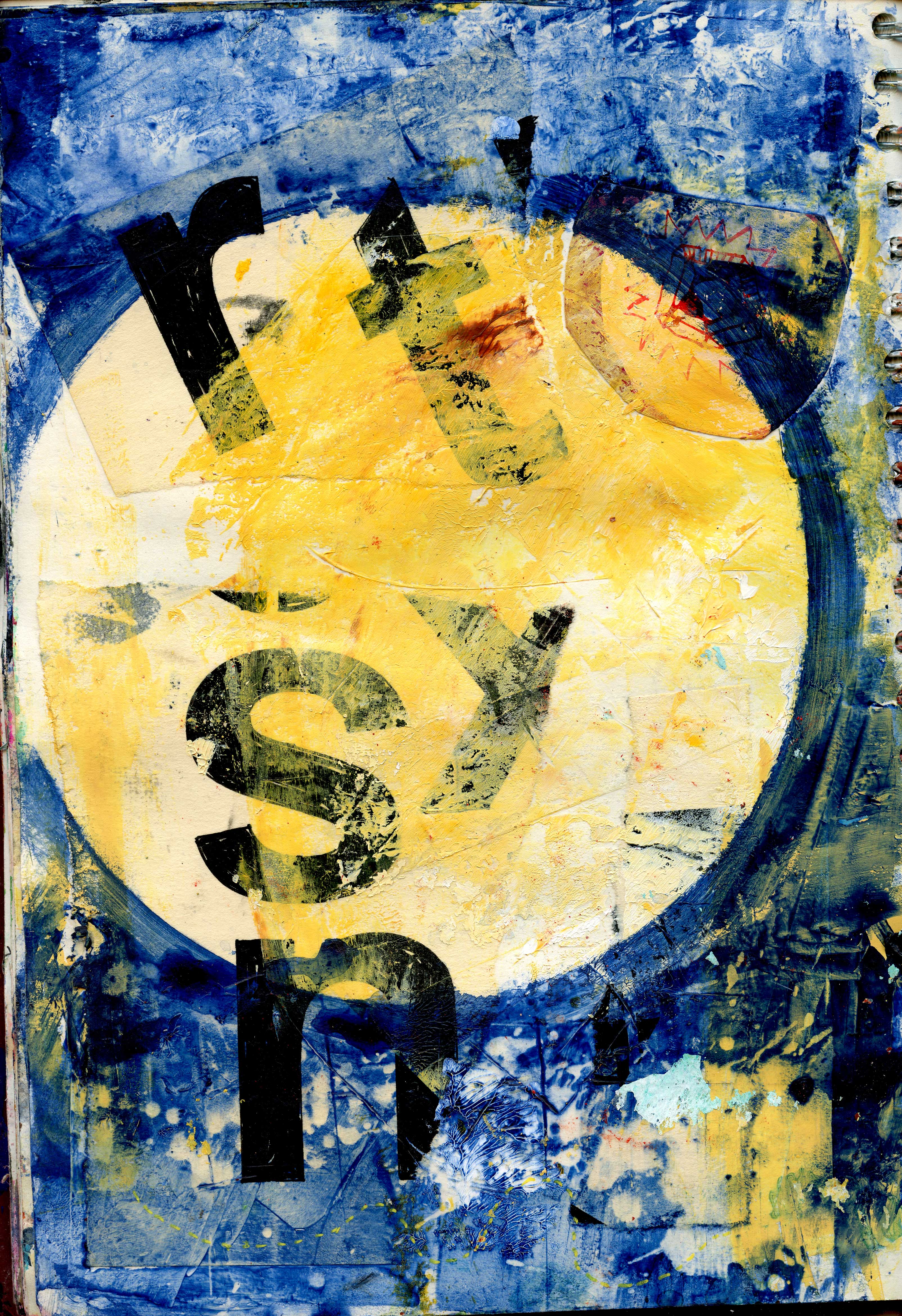 A4 acrylic and mixed media experiments. Using recycled text and remnants