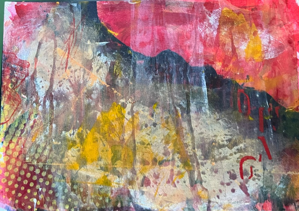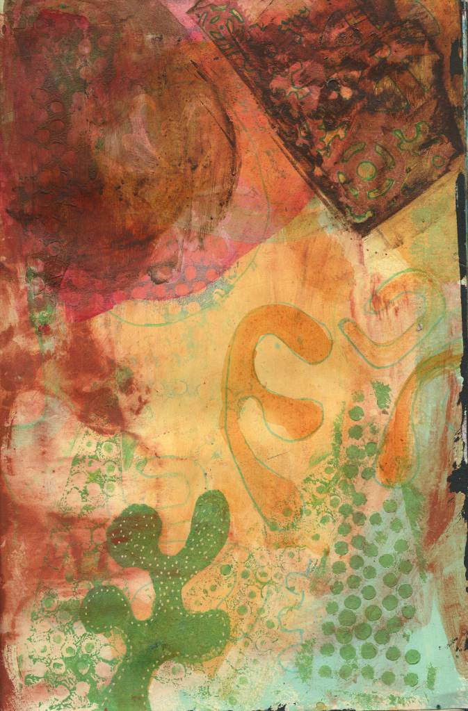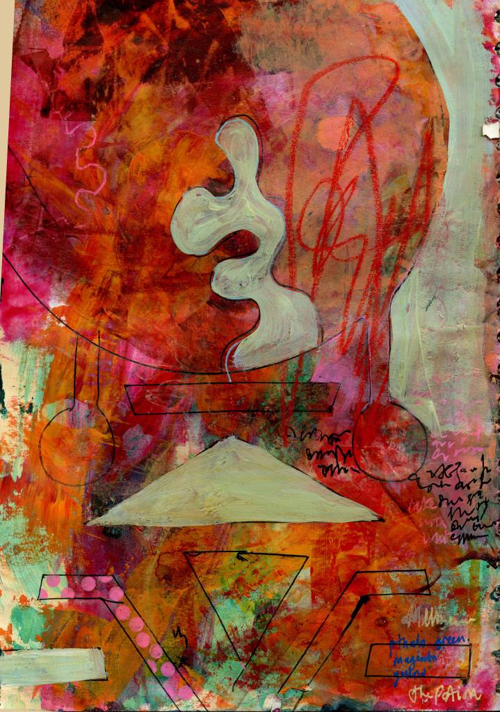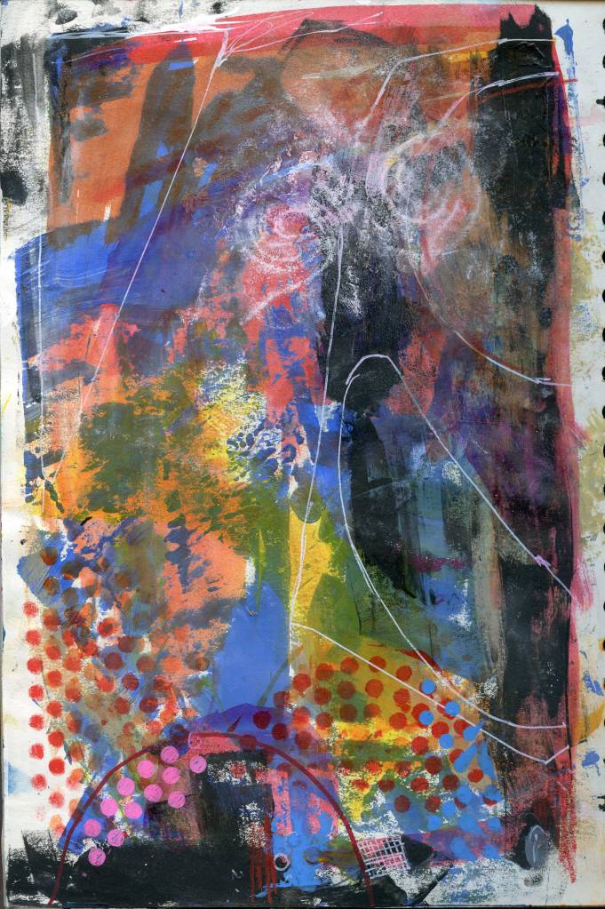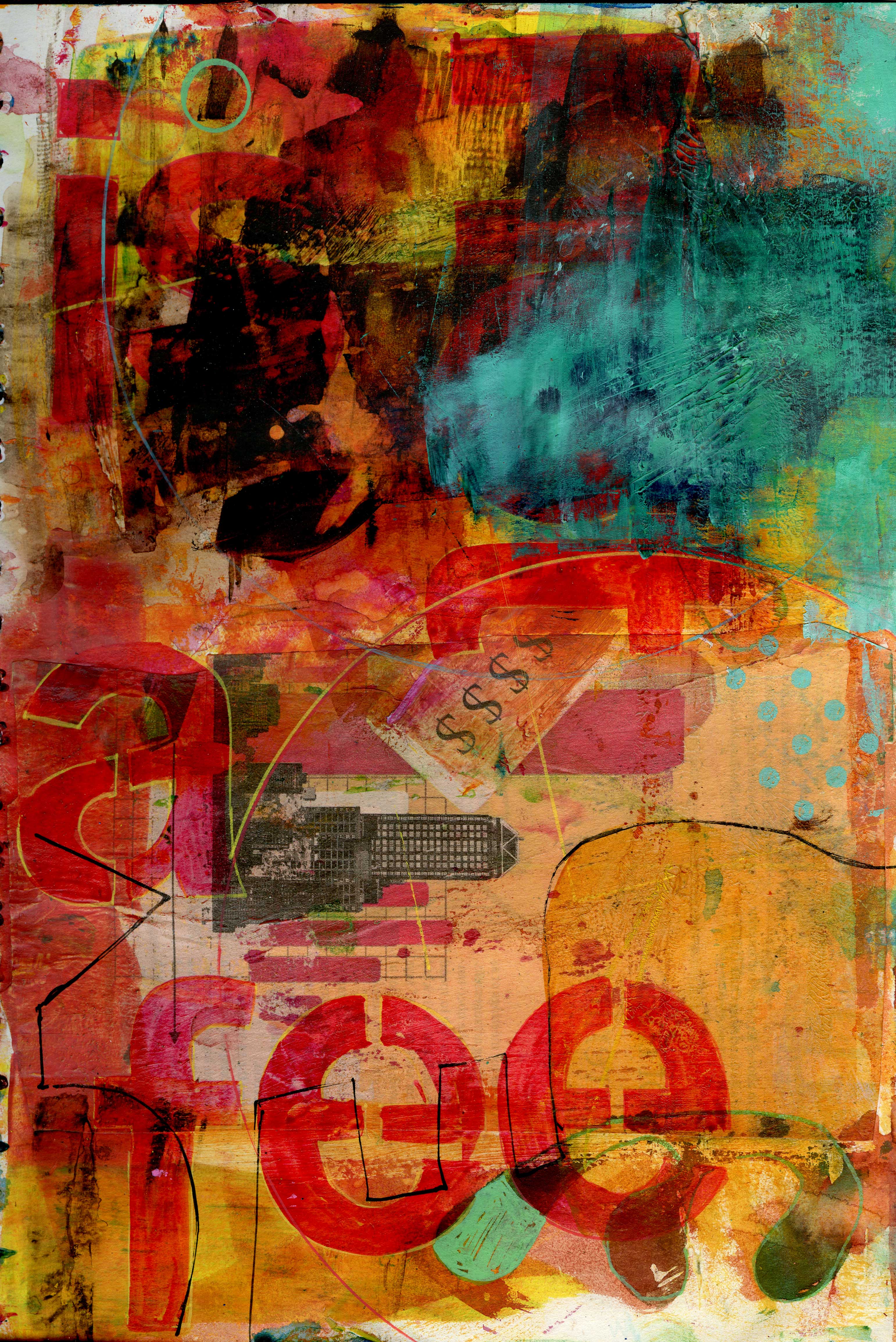 A4 acrylic and mixed media experiments. Using recycled text and remnants