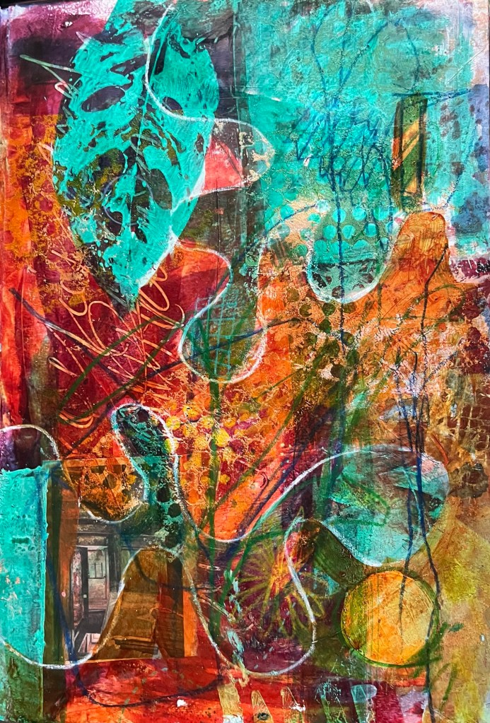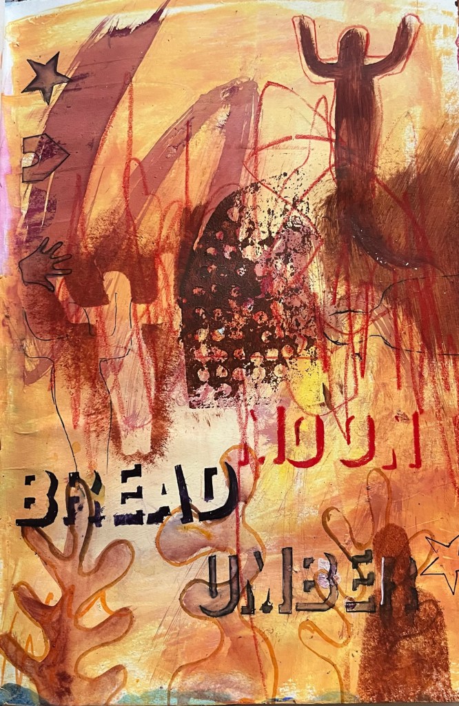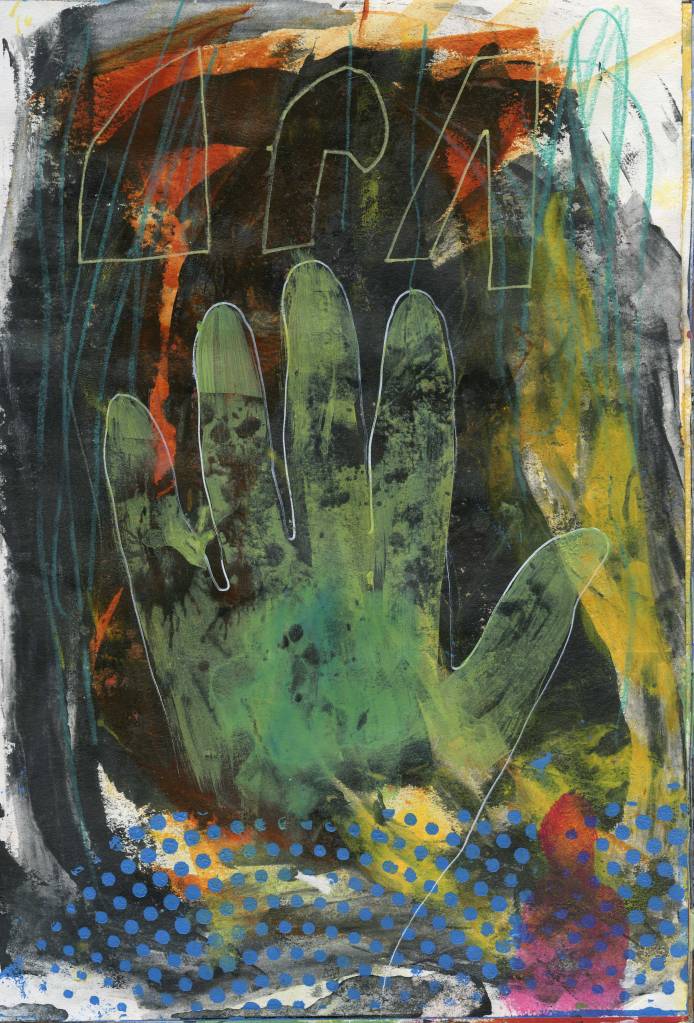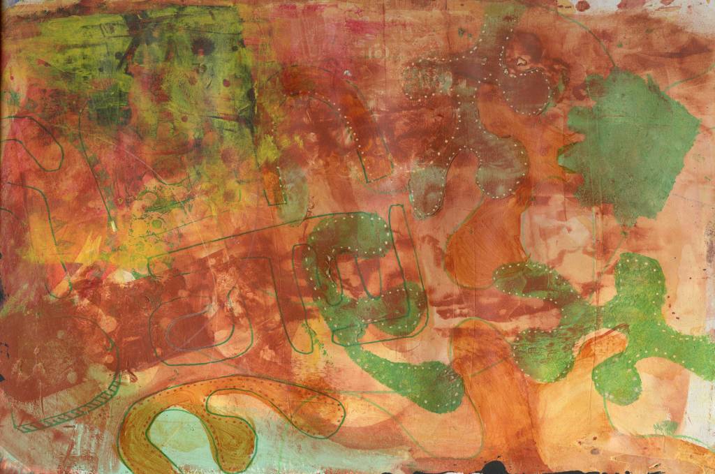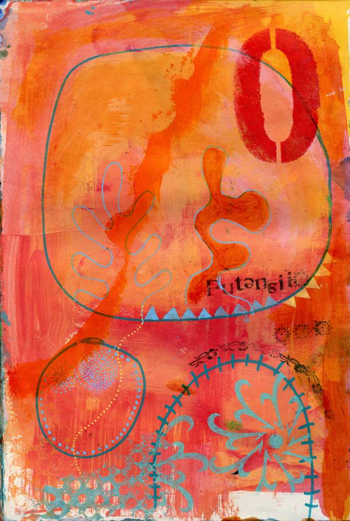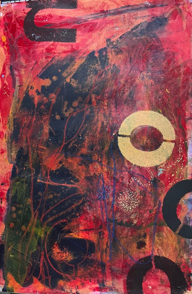 A4 acrylic and mixed media experiments. Using recycled text and remnants