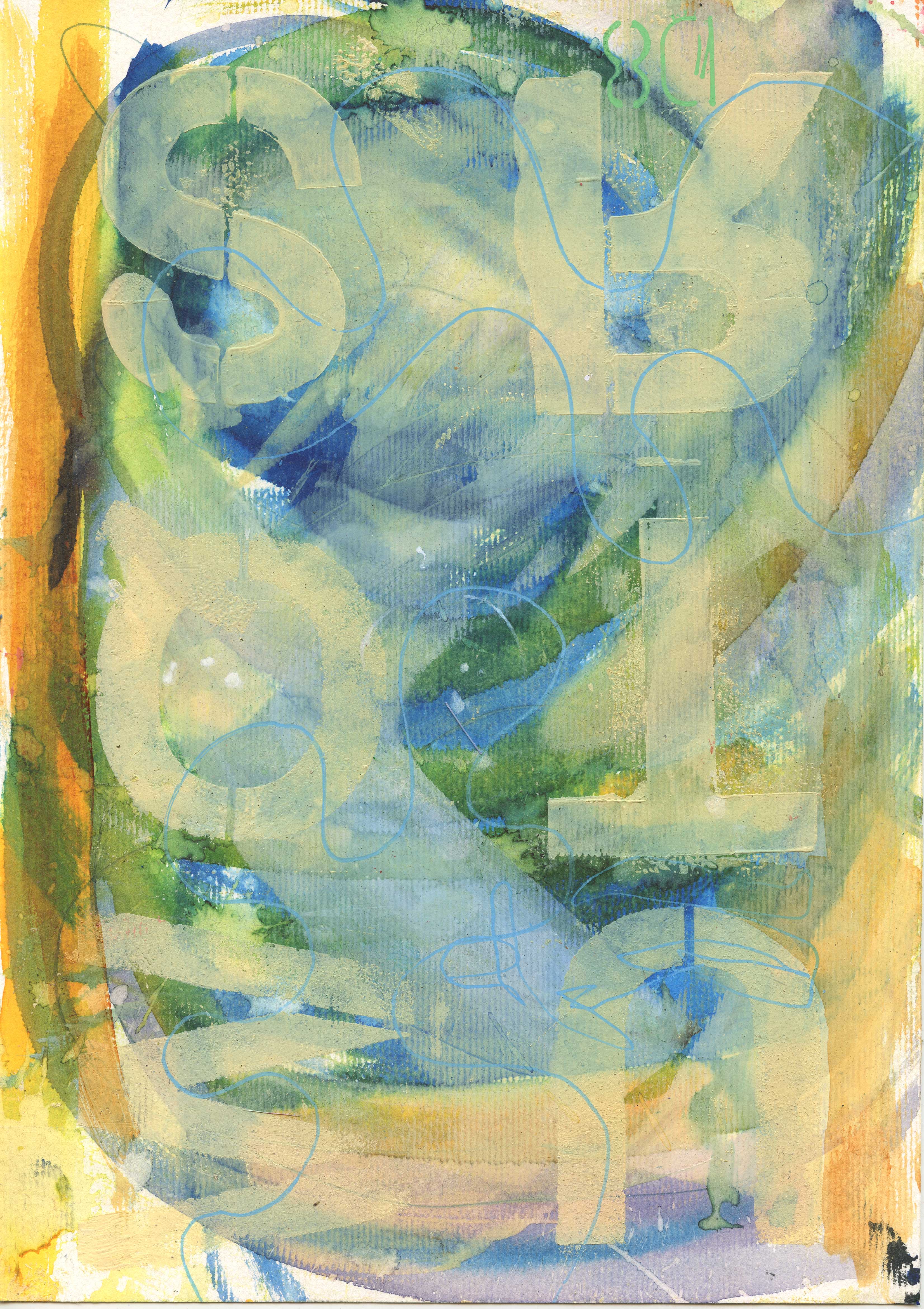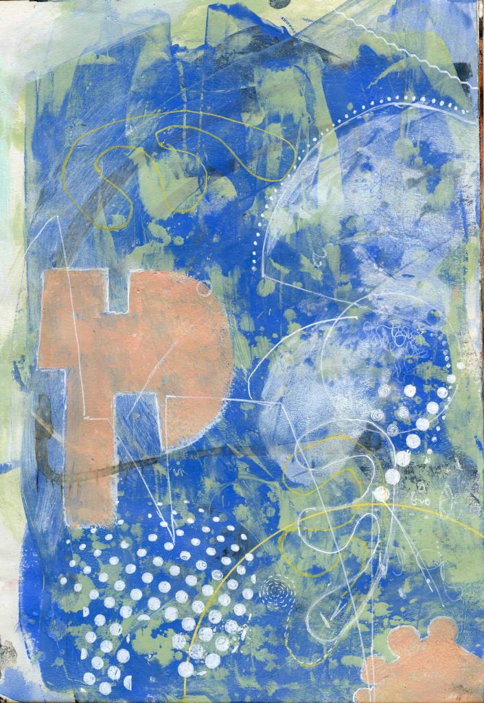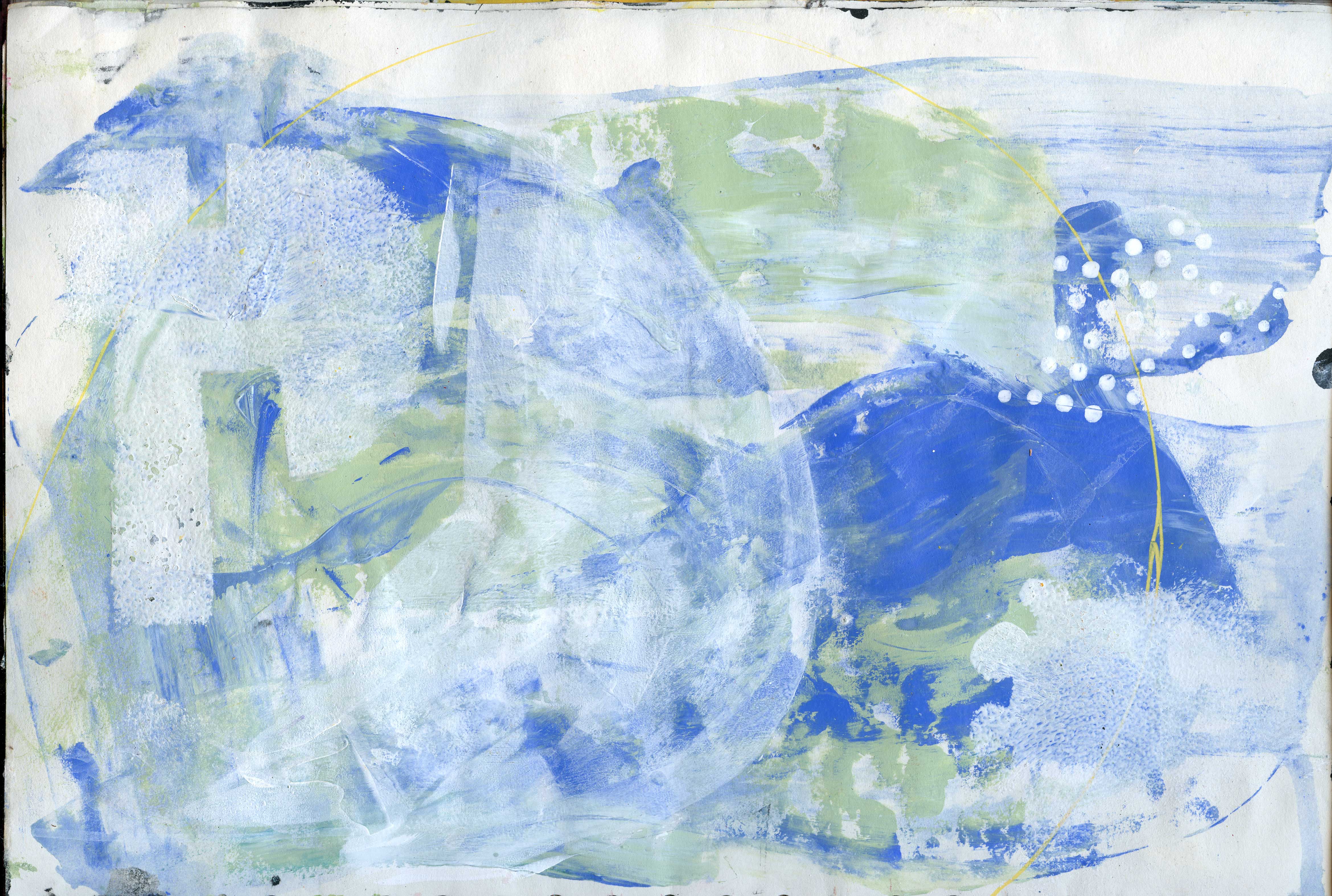 A4 size. Acrylic on paper. Taking stock of recent work. Blueish greenish ones.