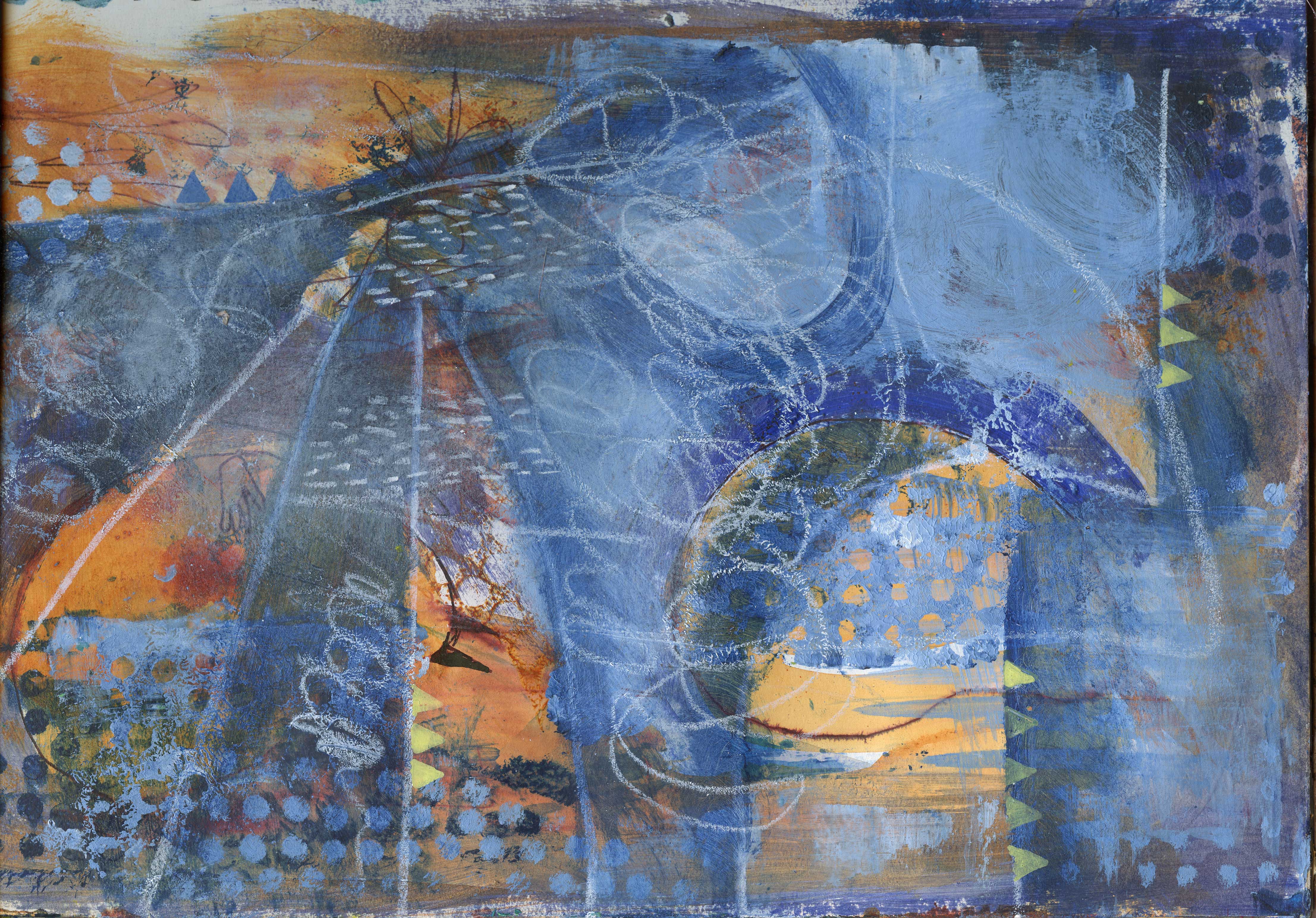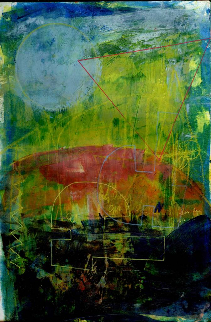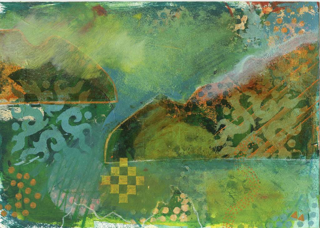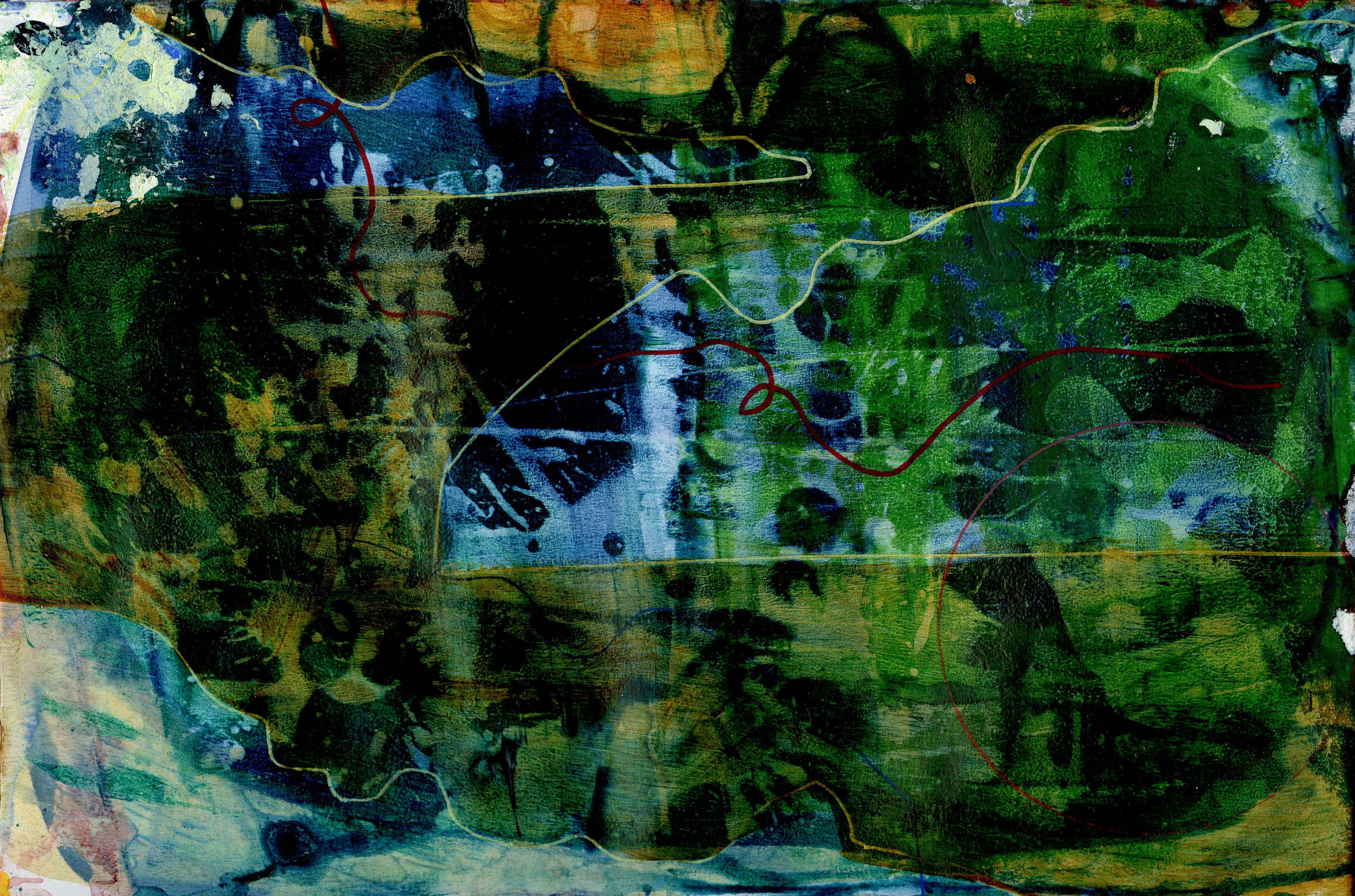 A4 size. Acrylic on paper. Taking stock of recent work. Blueish greenish ones.